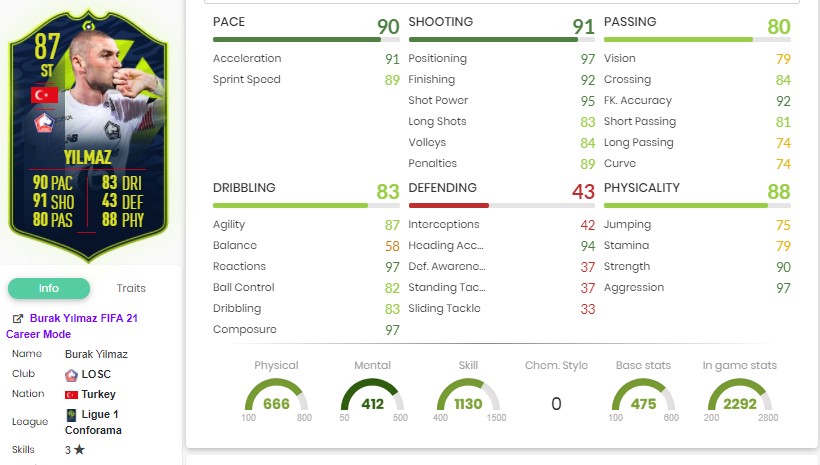 FIFA 21 Burak Yılmaz rating stats potential more.